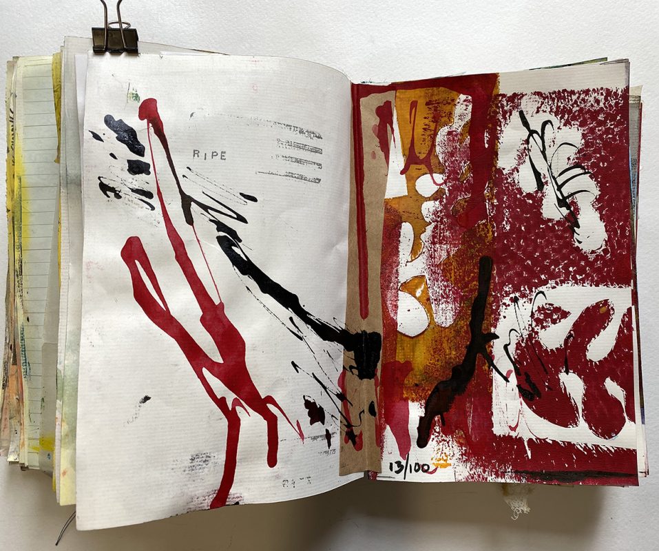 I’m using my sketchbooks as a tool to lead me and I rely on them to take that first step, that first mark. I often use images from my sketchbook to create a base layer for my digital paintings. I approach these works with the intention of keeping my gestural and freehand marks to act as though I would while working with paint. I feel like nothing is ever wasted while I’m creating. I’m always using my sketchbooks as a source of inspiration that is then maybe combined in a collage, encaustic work, or digitally and thus morphs into something bigger and better.
