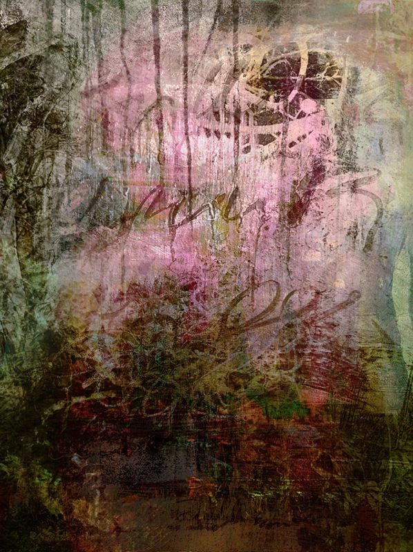 I live with paintings, photographs, finished and unfinished, and at the moment combine these to make composites in digital format. Something will stand out as a base point, and then there is a non-linear working that moves back and forth. Most days, there is a moment that grabs, and this is the moment to do it.