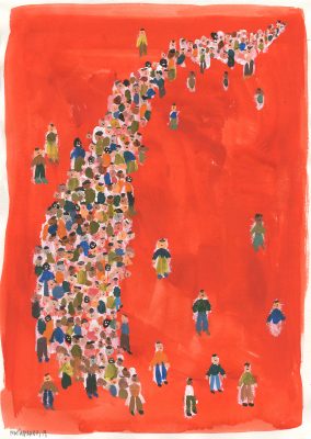 Your work is seemingly simple, but is also complex and questioning, for example ‘Yes, I’m changing’ or the intricate paintings of multiple people you sometimes do. They leave the viewer with questions, what themes are you exploring through these?